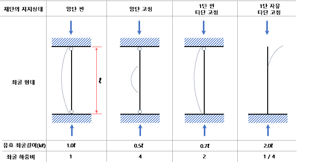 ·  다른 상태일 때는 좌굴을 고려하여 재료 길이를 산정