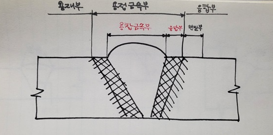 용접부 단면의 밑바닥 부분