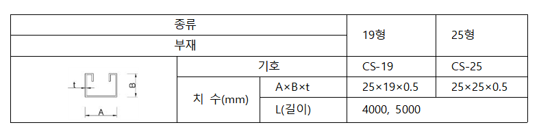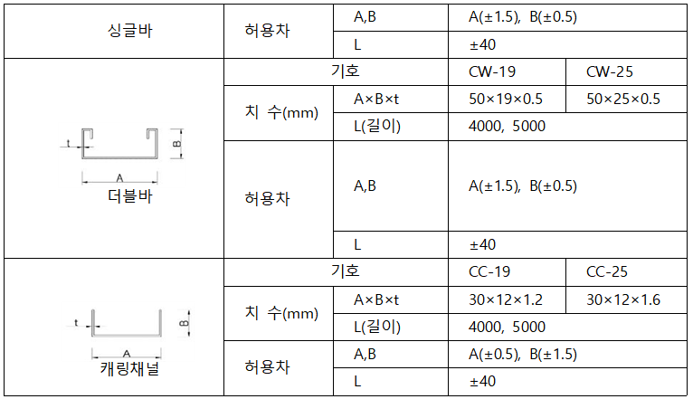 KS D (건축용 강재 받침대) M-BAR 및 캐링채널 자재