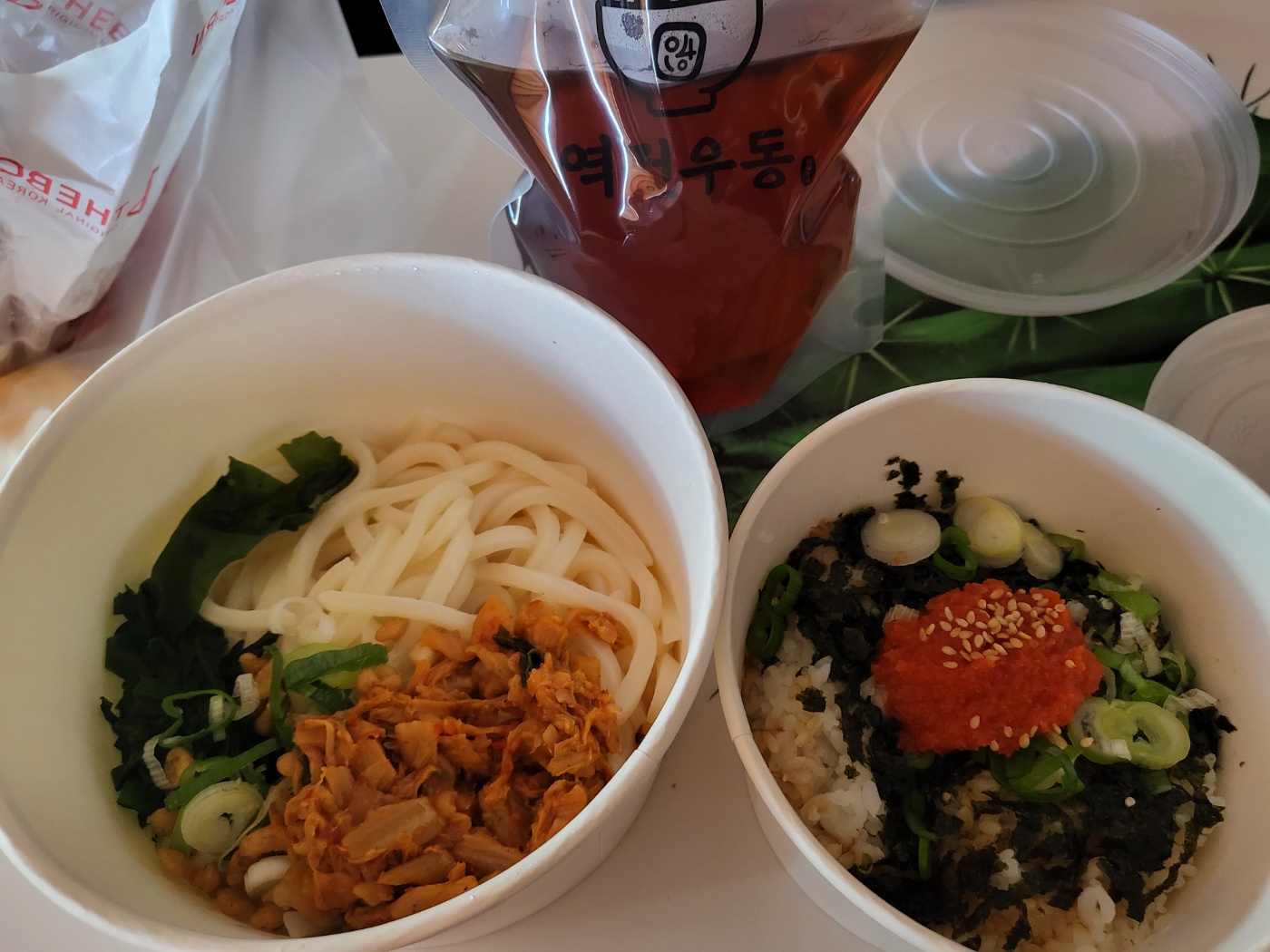 김치우동 + 명란미니덮밥 + 돼지갈비맛 튀김