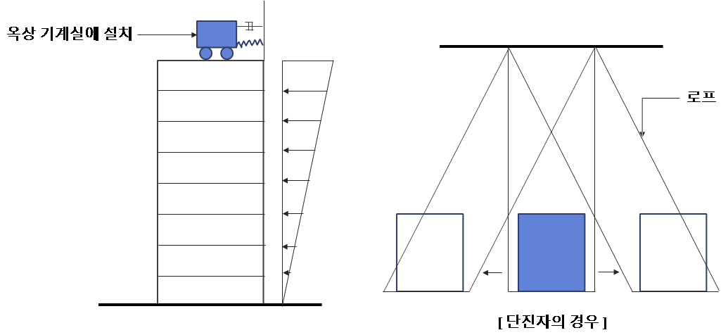 건축물의 최상부에 구조물의 고유주기와 일치하는 진자를 설치하여 건물이 바람 등에 의해 흔들리기 시작하면 진자의 움직임은 역방향으로 작용하여 건물의 진동을 저감 시켜 주는 장치이다.