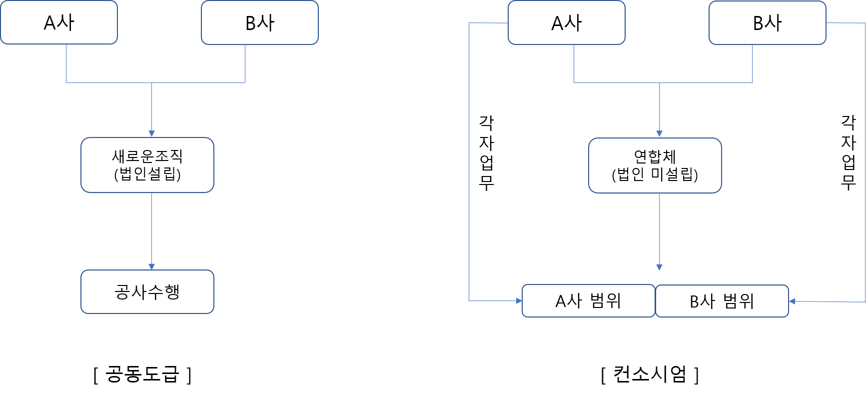 법인을 설립하지 않고, 각각 독립된 회사가 하나의 연합체를 형성하여 각자의 공사범위를 수행하는 것