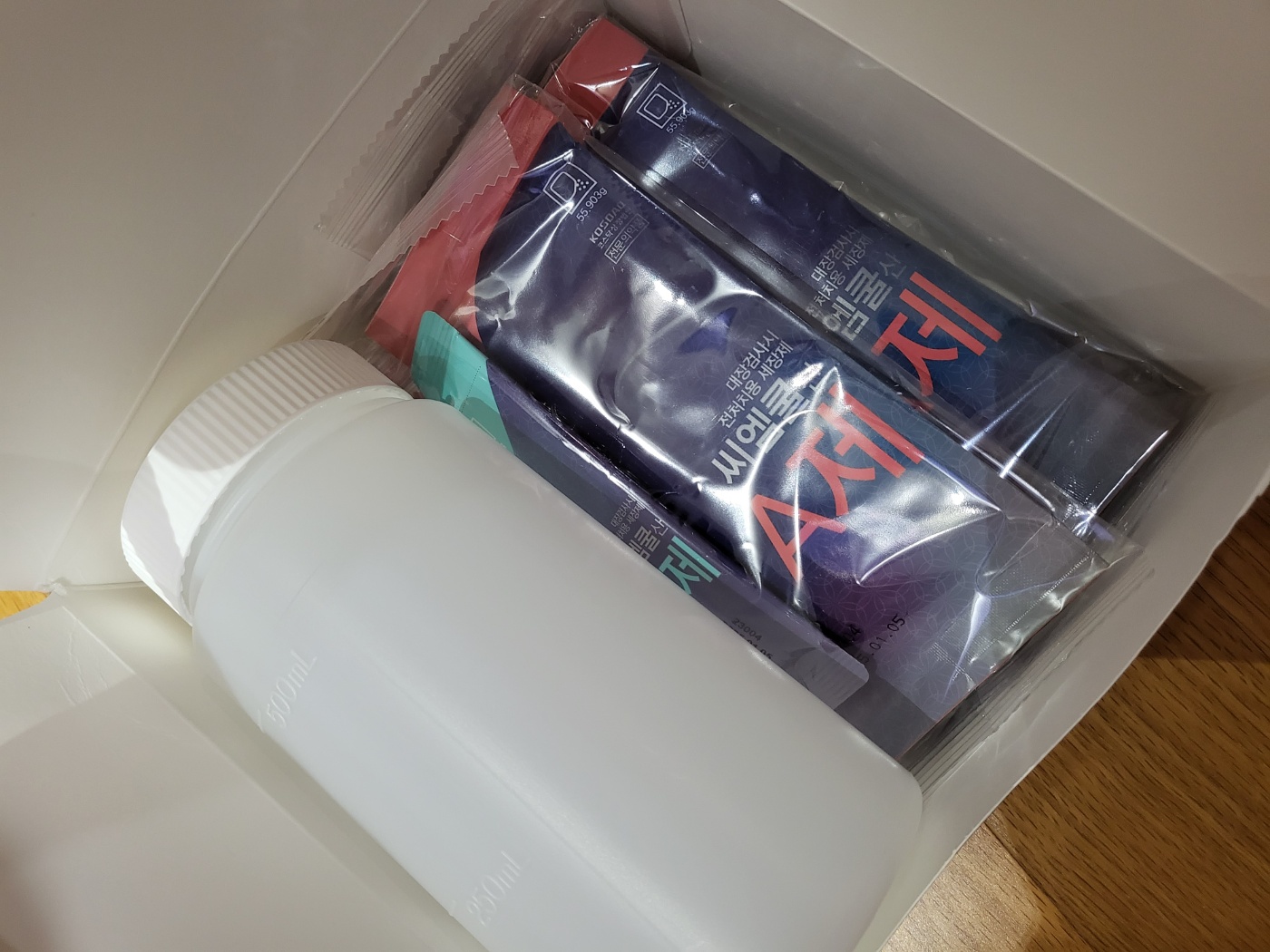 대충 보니 두 개를 물에 섞어서 먹으라는 거 같은데..