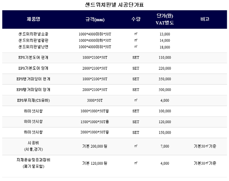 샌드위치판넬(EPS판넬)에 대해서...