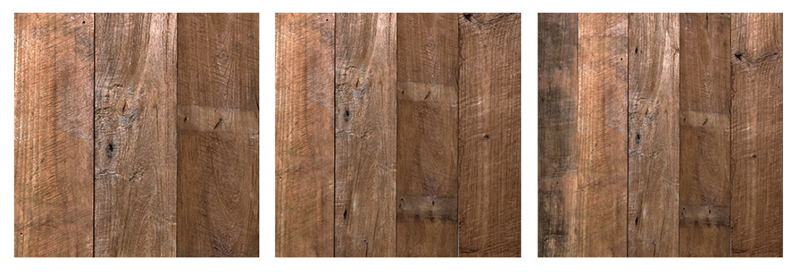 앞면은 플래닝, 뒷면은 러스틱으로 한 차례 가공되어 고재의 깊은 에로션을 깔끔한 느낌으로 즐길 수 있다.