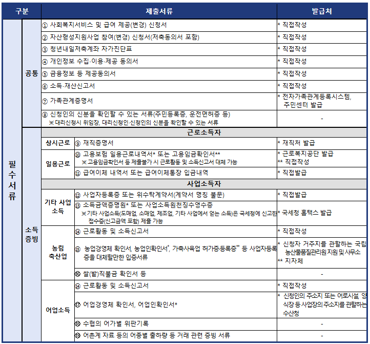 · 읍면동 주민센터 방문접수 및 복지로를 통한 온라인 신청이 가능