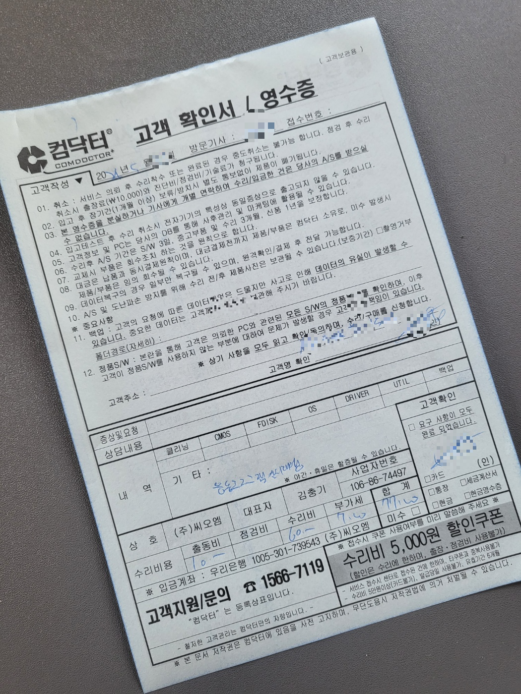 영수증을 보아하니 업체는 컴닥터고 체인처럼
