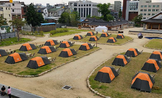 전라감영 서편부지에 마련된 캠핑장은 도심지와 가까이 있어 접근성이 좋고,