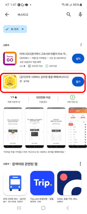 우선 핸드폰 플레이스토어에 가서 버스 타고 앱을 다운로드한다!
