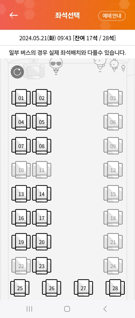 시간대별로 몇 석이 남아있는지 확인할 수 있고