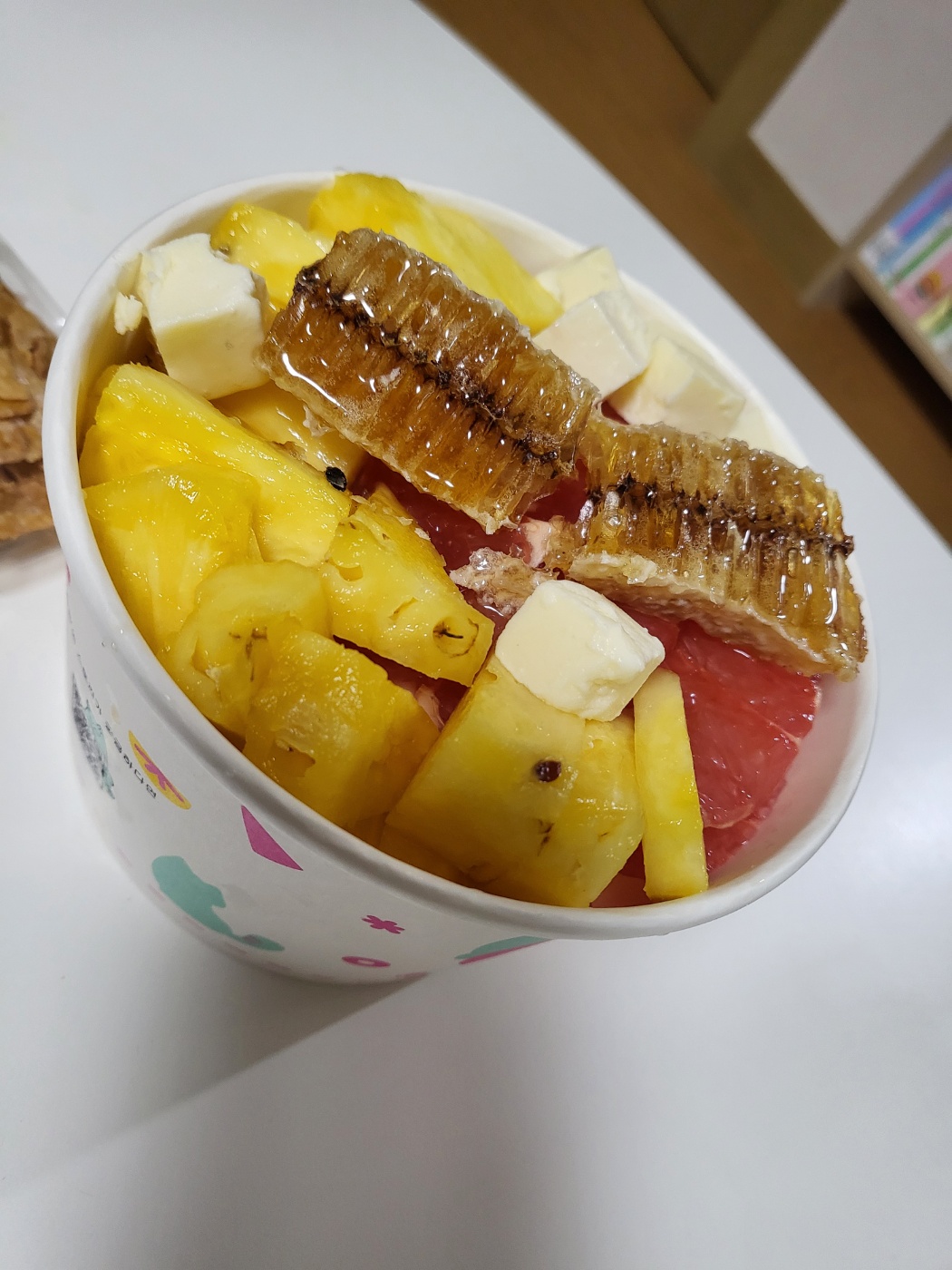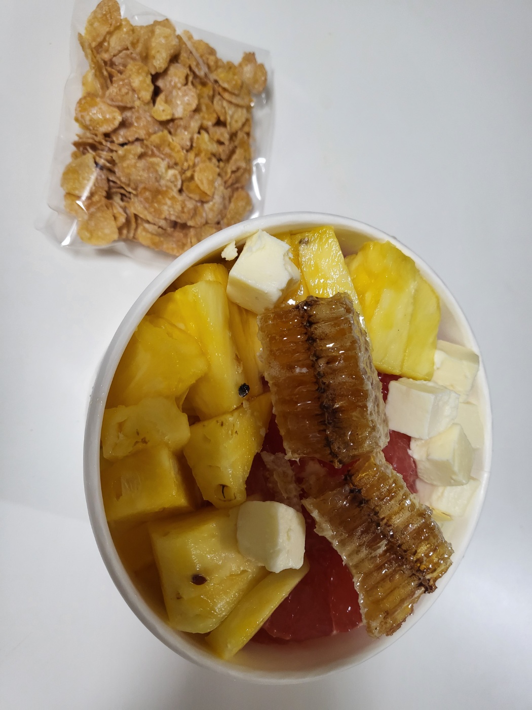 벌집꿀 + 파인애플 + 생자몽 +리치골드큐브치즈 + 콘프라이트시리얼