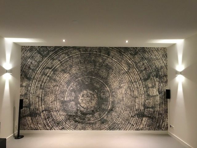 대리석이나 타일 등의 마감재로 꾸미는 게 부담스럽다면 벽지 중에서도 뮤럴벽지라고