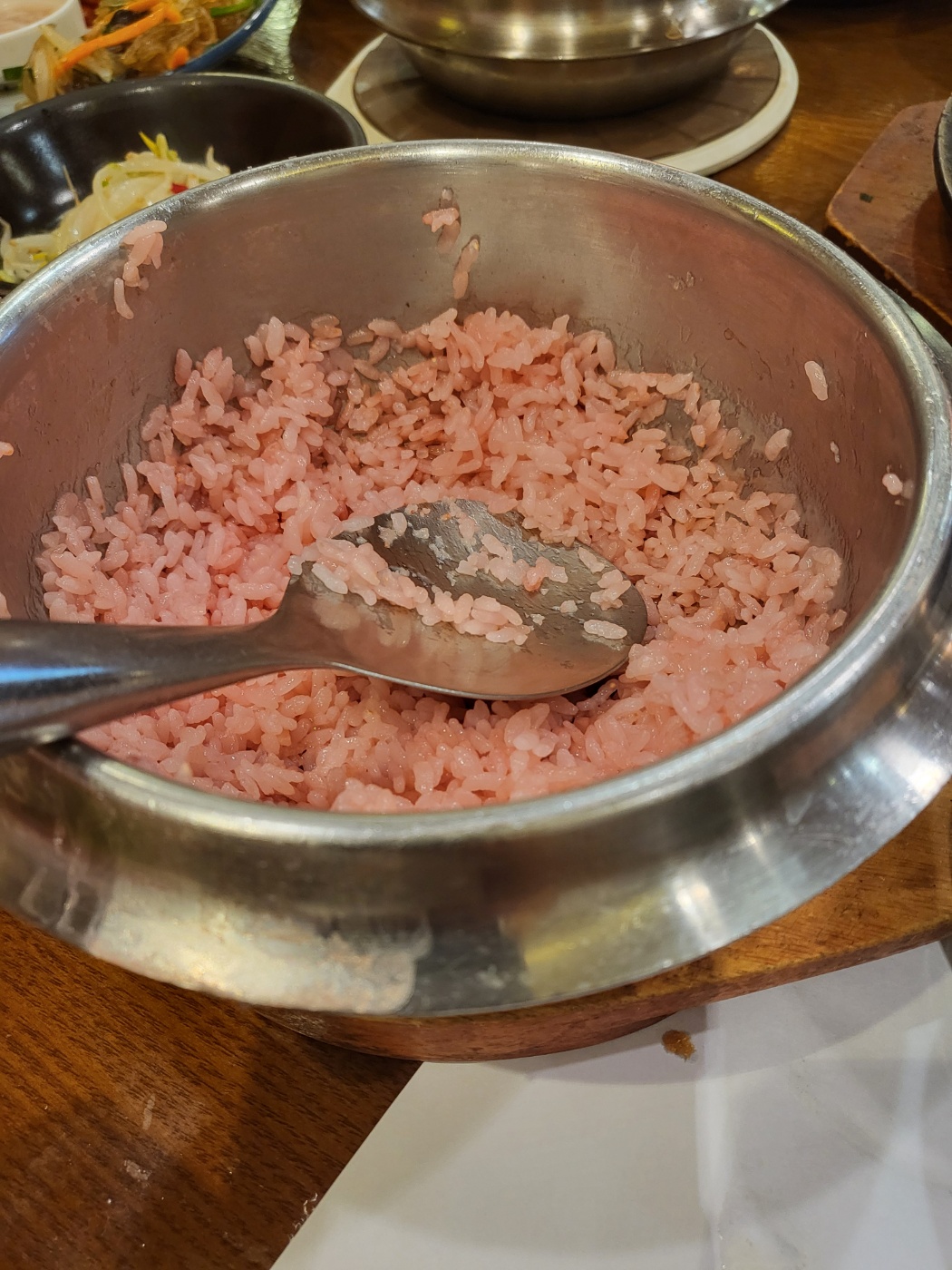 밥 색깔이 벌겋다. 요건 홍쌀~