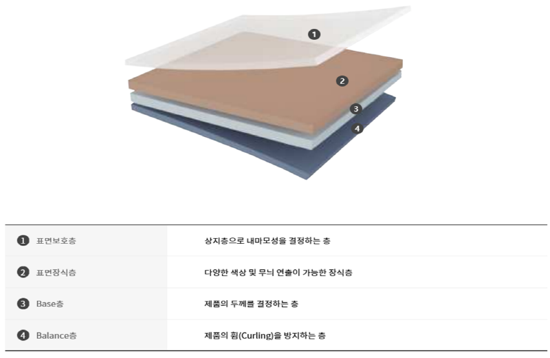 찍힘 및 긁힘에 강한 특수 표면 가공처리로 유지, 관리가 용이하며 시간의 흐름에 따라