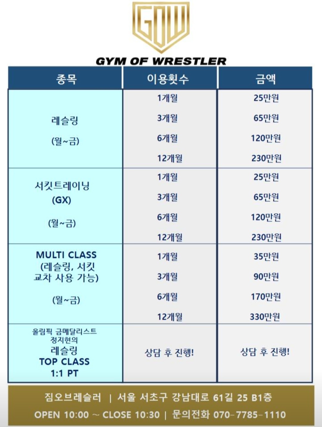 레슬링선수 정지현 짐오브레슬러 위치, 가격정보!