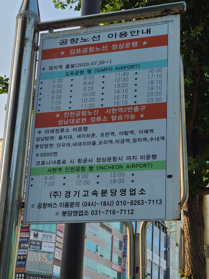공항리무진버스 시간표 업뎃 _ 분당정자역 출발 [20.7.20 ~ 현]