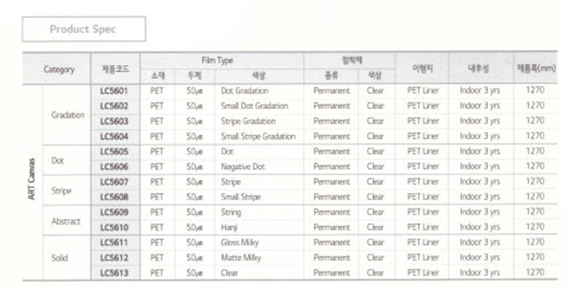 | Size | 재질 [Material] | 점착 [Adhesive Type] |