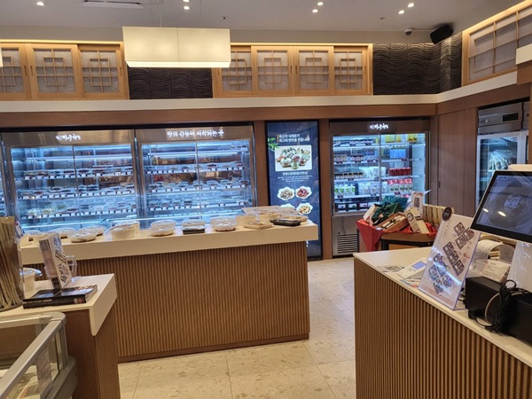 매장 안으로 들어가면 깔끔한 우드톤과 한정식 반찬집이라 그런지 우리나라 한옥에서 볼법한