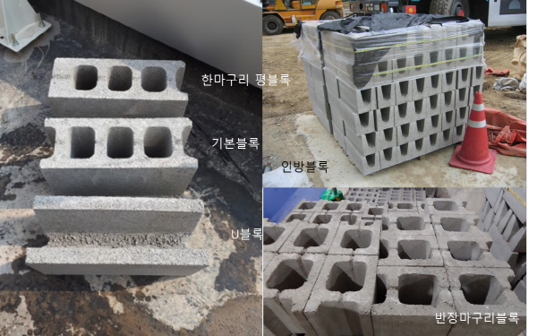 블록으로 형틀을 만들고 그 속에 철근과 콘크리트를 채워 넣는 구조