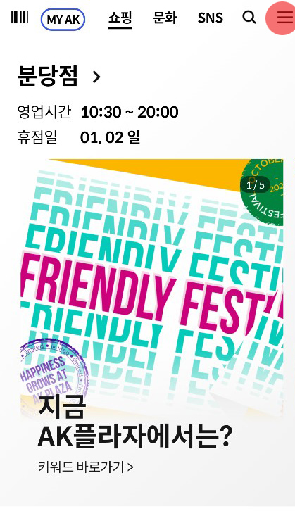 AK플라자 앱을 들어가면 상단 우측에 삼선이 보일 것이다.