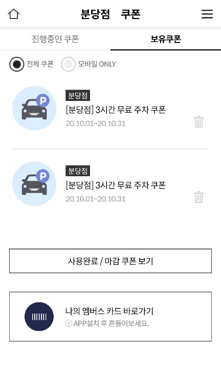 그러면 무료주차쿠폰이 뜰 것이다.