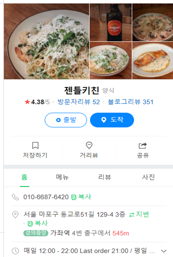 그곳은 연남동에 있는 "젠틀키친" 이란 곳이다..