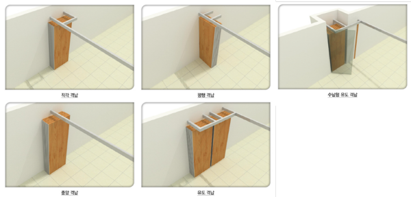 옵션 사항 출입도어/ 창호타공 출입도어/ 격납포켓도어 출입도어/ 창호타공