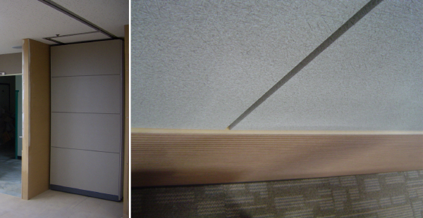 좌: 오픈했을때(전체 상황실로 사용), 우: 무빙월로 공간분리(근무공간으로)