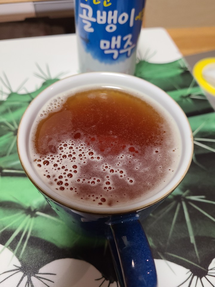 우선 골뱅이 맥주는 색이 일반 맥주보다 진했고