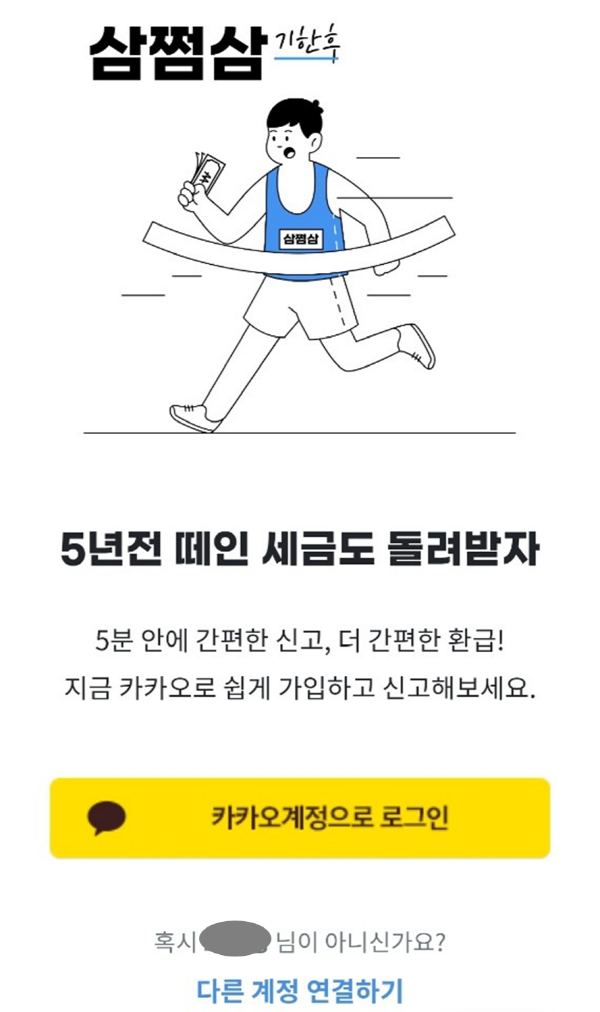 지금 환급받으러 가기를 클릭하면