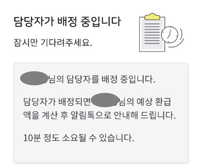 위 이미지처럼 담당자 배정 중입니다 라는