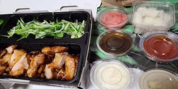 로스트 치킨 순살과 상큼한 야채들을 쌈무에