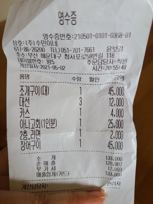 부산 해운대 수민이네 조개구이집 후기