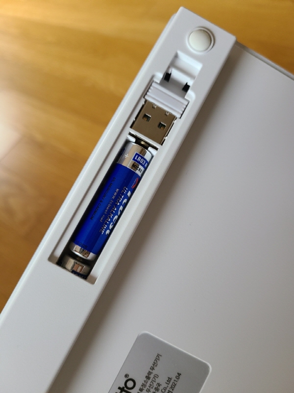 키보드 뒷면에 건전지를 넣고