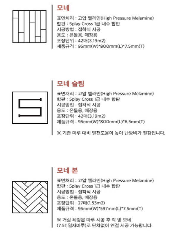 '모네 슬림', 그리고 헤링본 패턴을 비롯해 다양한 패턴 시공이 가능한