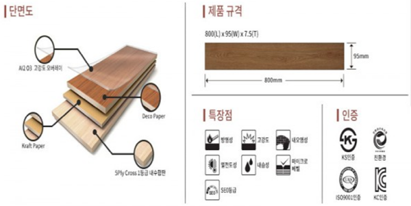 - 최고급 원목을 사용한 1급 내수합판으로 제조한 강마루