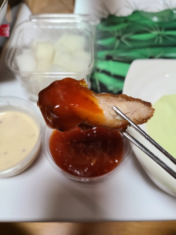 살짝 저기 했으나 쌈무에 쌈 싸 먹어야 하기에