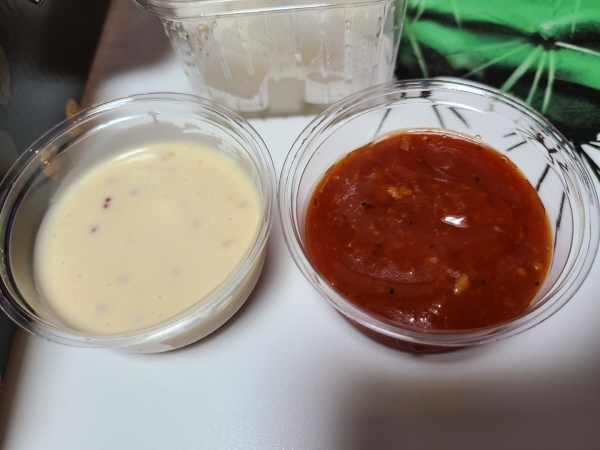 소스는 마요네즈소스와 칠리소스 두 가지를 주는데..