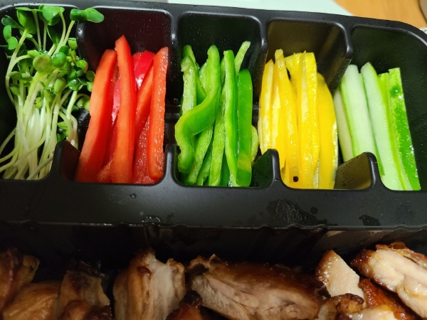 야채는 오이, 청피망, 홍피망, 노랑 피망, 무순까지..