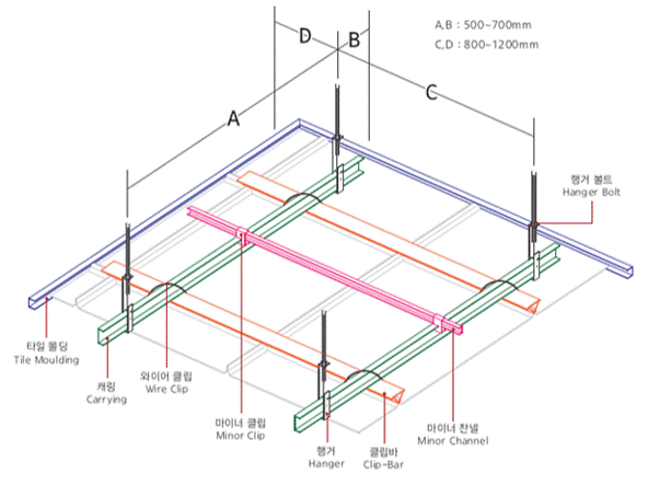 · 보편적인 천장재 시공법으로 시공에 사용되는