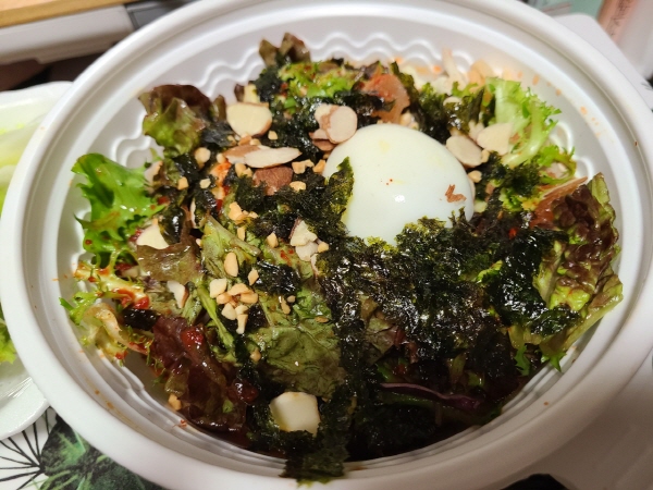 김가루에 반쪽 계란 그리고 온갖 야채들~