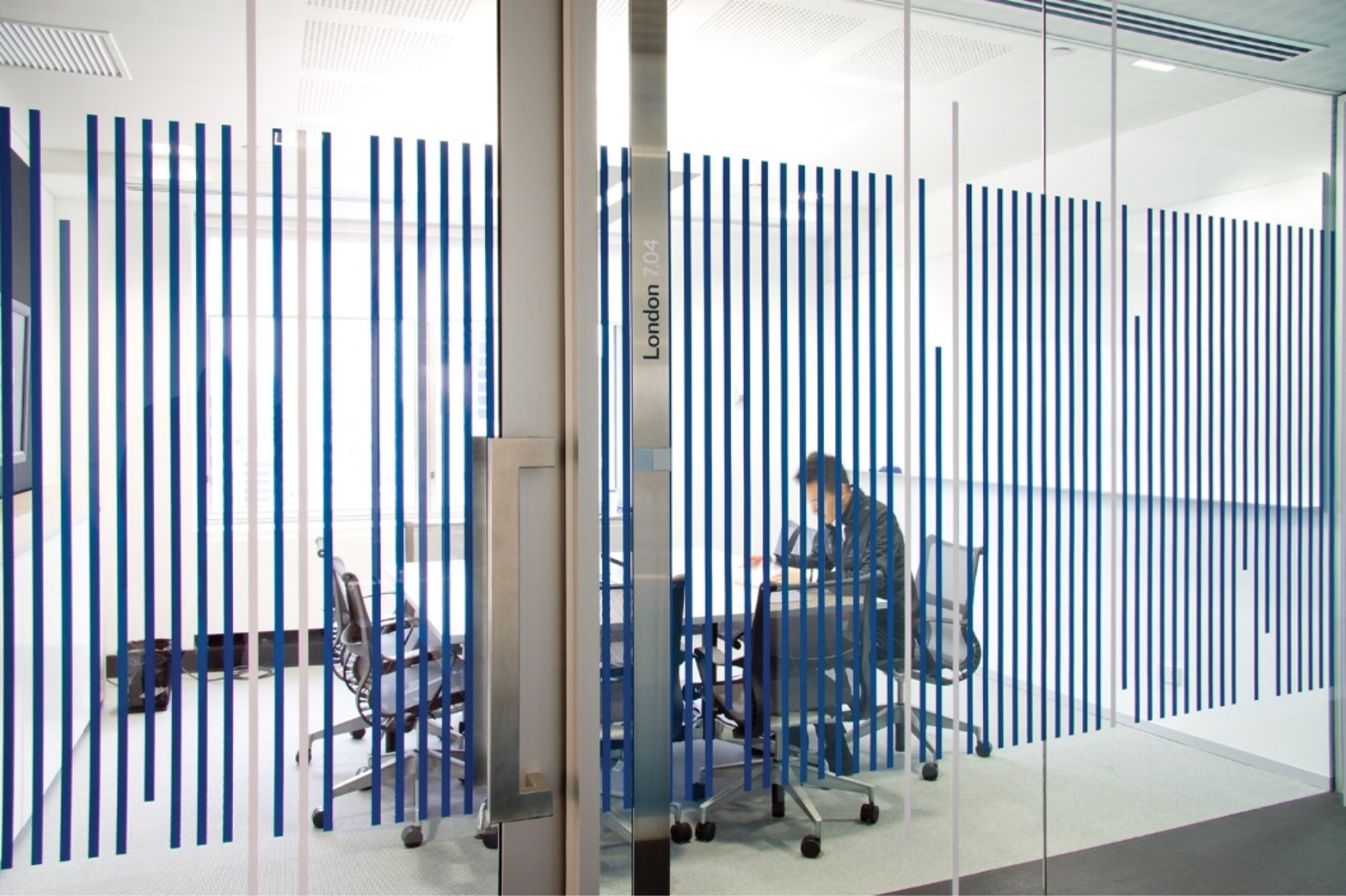 다양한 시트로 유리벽체도 개성 있는 디자인으로... 그라데이션 시트는 에칭 시트(안개 시트)와 더불어 유리벽체에 많이 쓰인다. 예전에는 거의 시선차단을 위한 용도로 쓰였다면 요즘은 유리벽