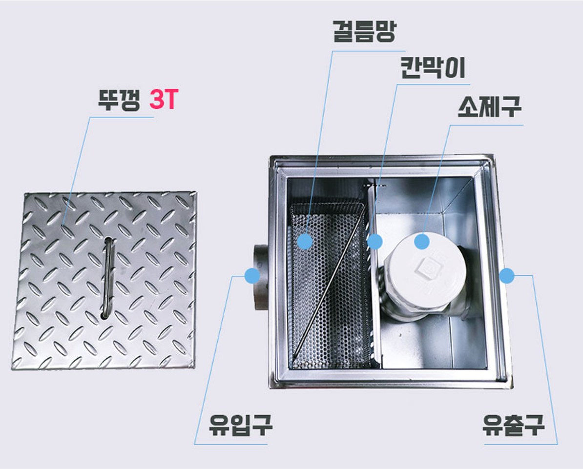 주방 바닥배수용 설비로 배수구에 접속한 것으로,