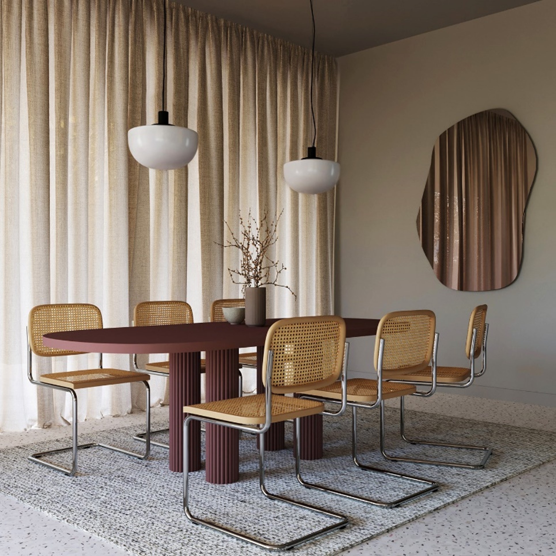 주방에 긴 Bar테이블 앞에 'T'자형태로 배치해