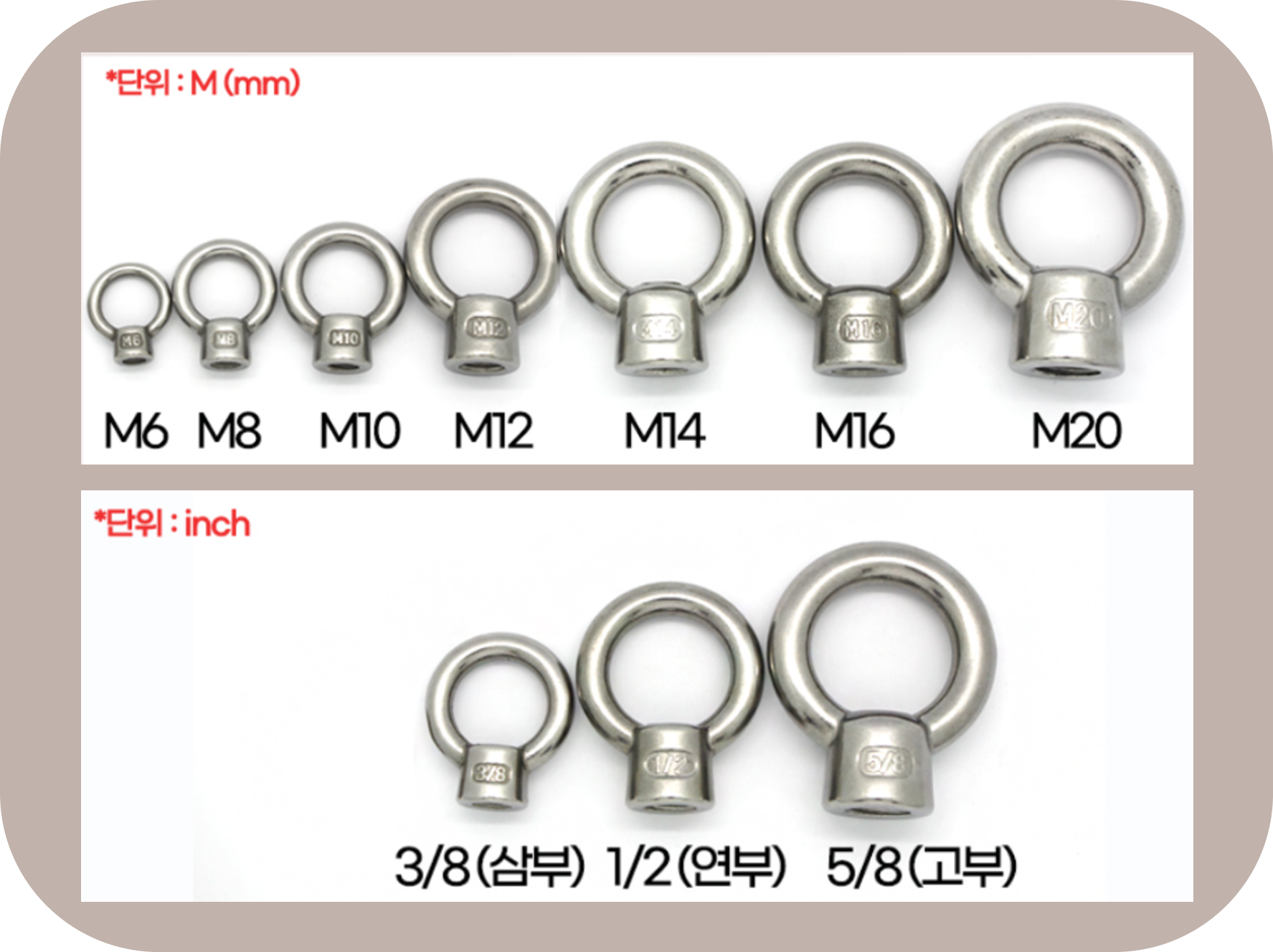 단 위 : mm 3 / 8 inch(삼부) 1 / 2 inch(연부) 5 / 8 inch(고부)
