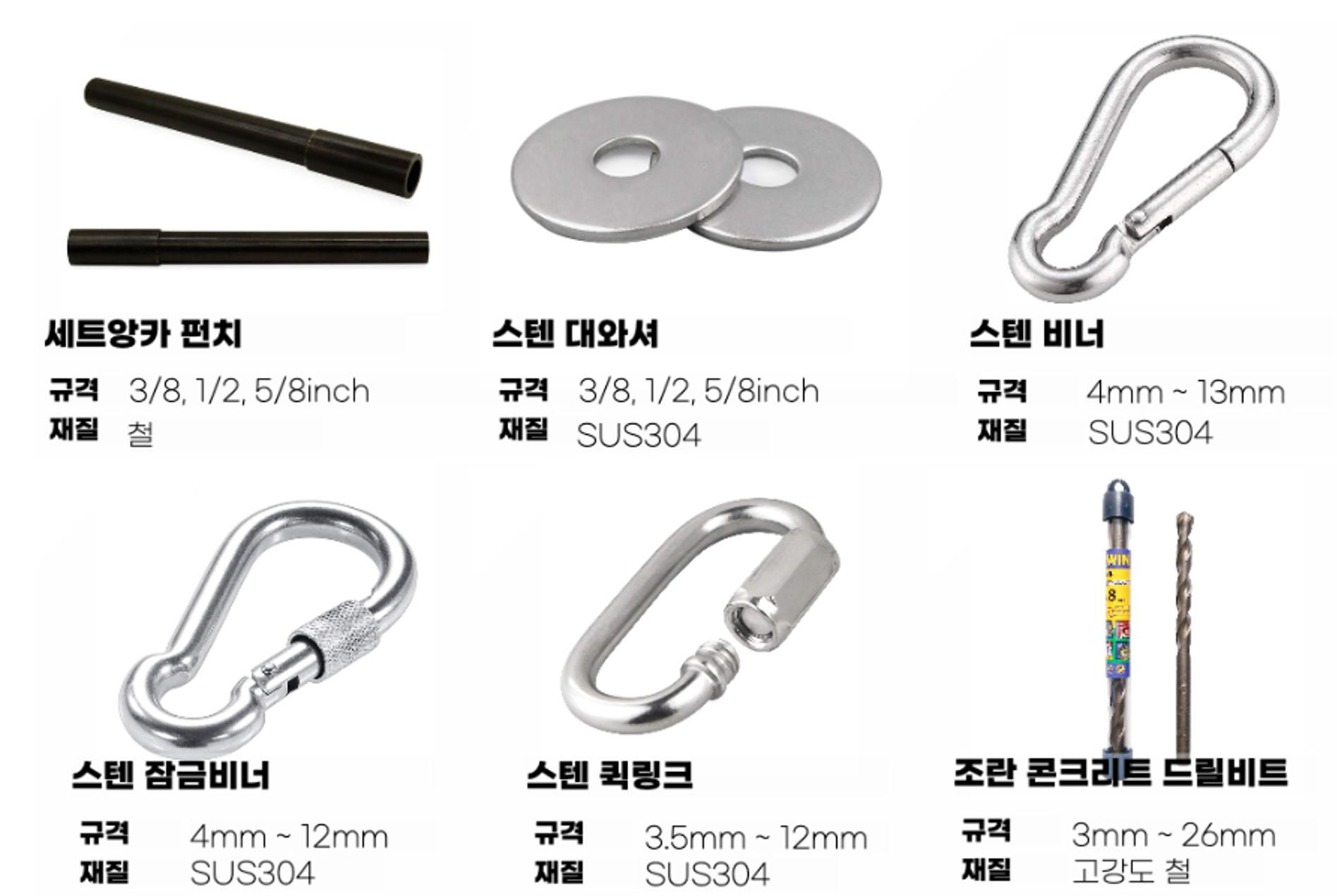 | 세 트 앙 카 펀 치 | 3/8 | 1/2 | 5/8 |
