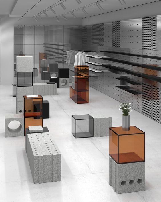 상업공간에서 많이 활용하는 모던한 수납, 디스플레이 선반 디자인