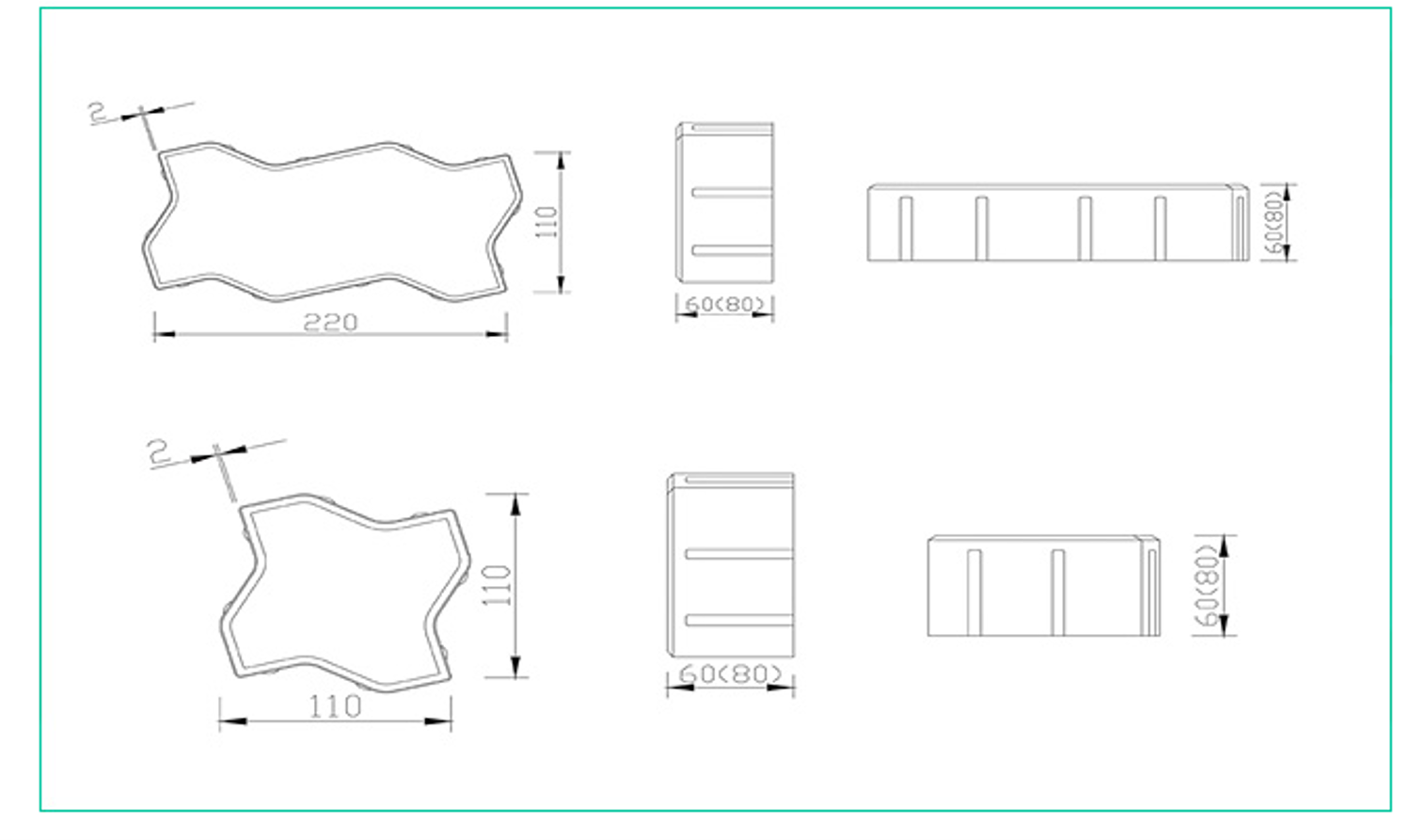 | 220 x 110 x 60 | 165 | 39 | 녹색 | 차도 |