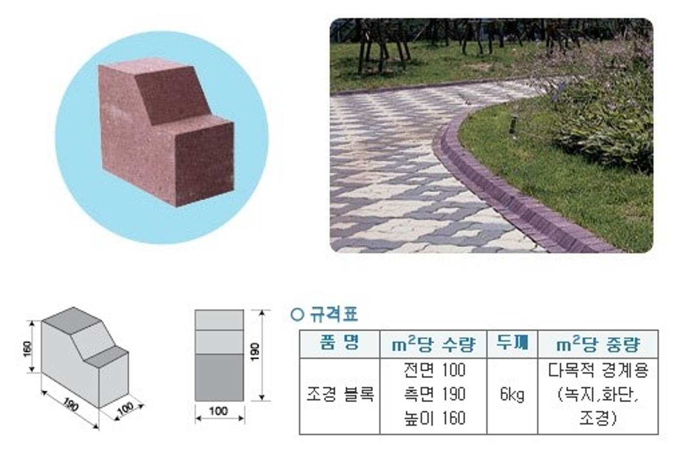 | 220 x 110 x 60 | 126 | 39 | 녹색 | 보도 |