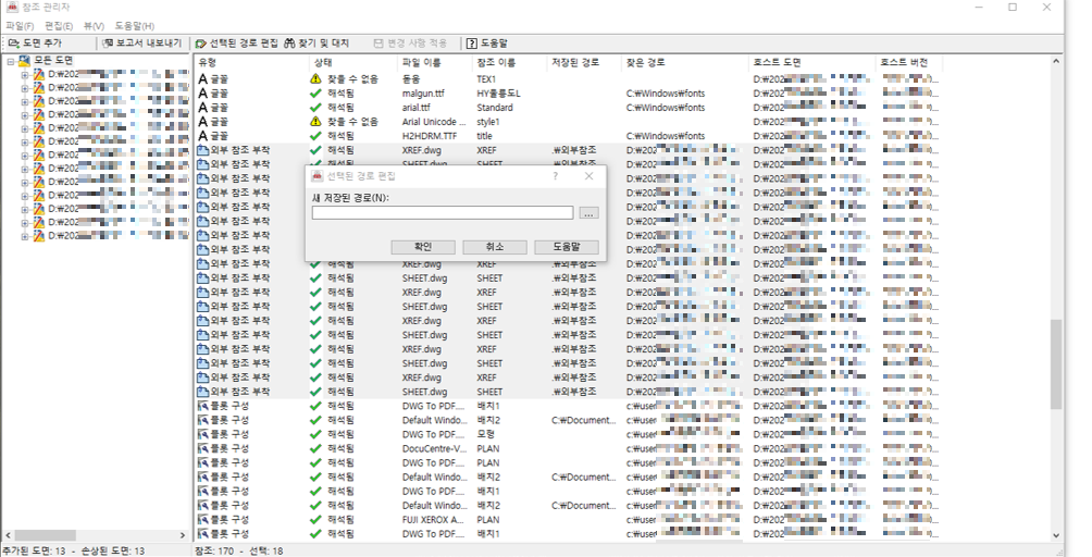 우선 외부참조, 가령 sheet나 xref 같은 도면이